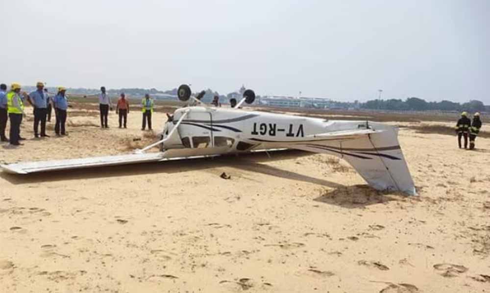 ट्रेनिंग विमान की आपात लैंडिंग: क्रैश से पहले बाहर कूदे पायलट व यात्री, टली बड़ी दुर्घटना