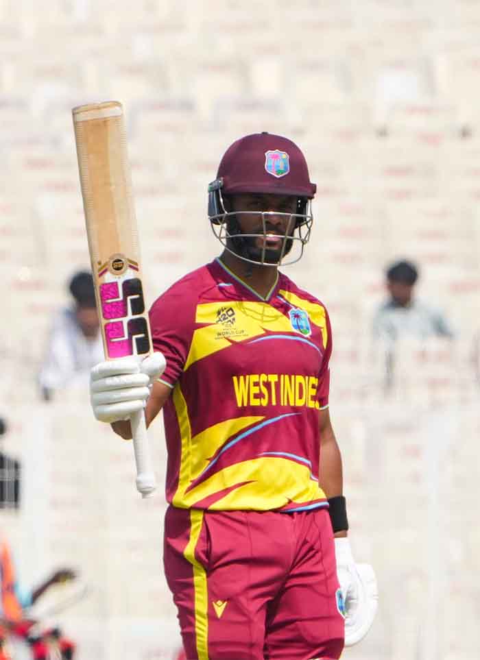 इटली ने बाएं हाथ के तेज गेंदबाज अली हसन के अपनी पहली गेंद पर ब्रैंडन किंग (04) को आउट किया। लेकिन नेपाल के खिलाफ नाबाद 61 रन बनाने वाले होप ने तेज गेंदबाज थॉमस ड्रेका को निशाना बनाकर जवाबी हमला किया। उन्होंने इसके बाद हसन पर दो चौके और स्क्वायर लेग के ऊपर से छक्का जड़ा। ड्रेका ने पलटवार करते हुए शानदार फॉर्म में चल रहे वेस्टइंडीज के शिमरोन हेटमायर (01) को आते ही पवेलियन की राह दिखा दी।