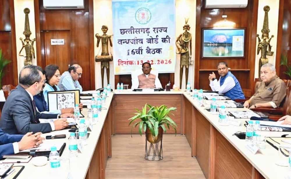 मुख्यमंत्री विष्णु देव साय की अध्यक्षता में आज मुख्यमंत्री निवास कार्यालय में छत्तीसगढ़ राज्य वन्यजीव बोर्ड की 16वीं बैठक आयोजित हुई। बैठक में बोर्ड की 15वीं बैठक के पालन प्रतिवेदन तथा नवीन एजेंडों पर चर्चा उपरांत प्रस्तावों को राष्ट्रीय वन्यजीव बोर्ड के निर्णय हेतु प्रेषित करने पर सहमति बनी।