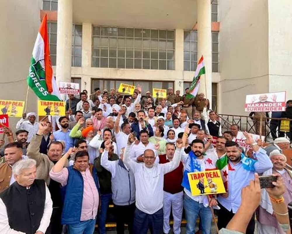 हरियाणा कांग्रेस ने मौजूदा सरकार की जन विरोधी नीतियों के विरोध स्वरूप जिला कांग्रेस अध्यक्षों के नेतृत्व में प्रदेश के प्रत्येक जिला मुख्यालय पर जोरदार धरना प्रदर्शन किया एवं उपायुक्त के माध्यम से राष्ट्रपति को ज्ञापन सौंपा। कांग्रेस नेताओं ने इस धरना प्रदर्शन में सरकार के खिलाफ जमकर नारे लगाए और जन विरोधी नीतियों के चलते सरकार को खूब-कोसा। यह जानकारी देते हुए हरियाणा प्रदेश कांग्रेस कमेटी के अध्यक्ष राव नरेंद्र सिंह ने कहा कि भाजपा की मौजूदा सरकार तुगलकी फरमानों के माध्यम से जनता को अनावश्यक रूप से परेशान कर रही है। उन्होंने कहा कि भारतीय संविधान की मूल भावना—समानता, न्याय एवं जनकल्याण—सरकार की नीतियों से आहत हो रही है।
