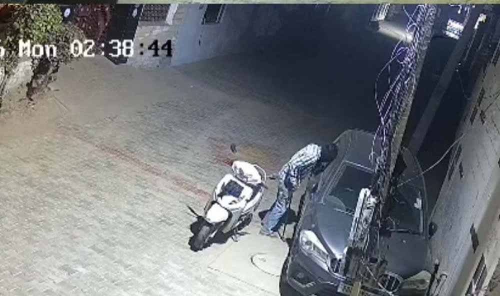CCTV में कैद वारदात: एक्टिवा पर आए बदमाशों ने कारों की खिड़कियां तोड़कर की चोरी