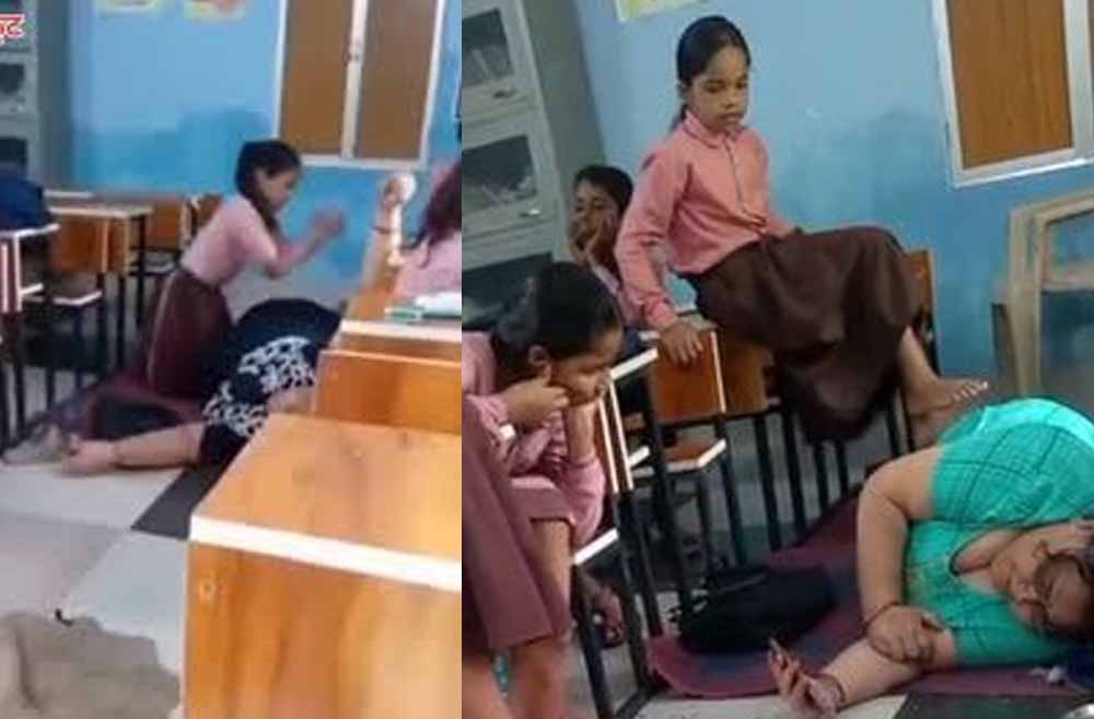 चित्रकूट में छात्राओं से मालिश कराते दिखीं हेडमास्टर