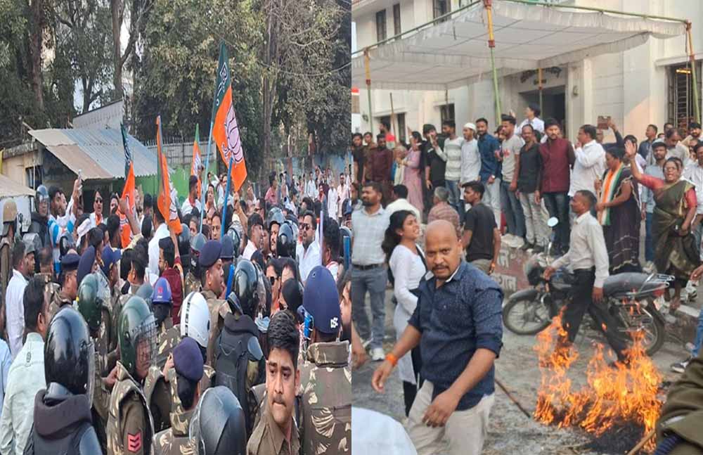रविवार को भारतीय जनता पार्टी के कार्यकर्ताओं ने उग्र प्रदर्शन शुरू कर दिया। भाजपा कार्यकर्ता तीन बैरिकेडिंग तोड़कर सीधे कांग्रेस कार्यालय के सामने पहुंच गए। यहां पहले से मौजूद बड़ी संख्या में भारतीय राष्ट्रीय कांग्रेस के कार्यकर्ताओं के साथ उनकी तीखी नोकझोंक हुई। स्थिति कई बार आमने-सामने की बन गई और पुलिस को दोनों पक्षों के बीच व्यवस्था संभालने में काफी मशक्कत करनी पड़ी।